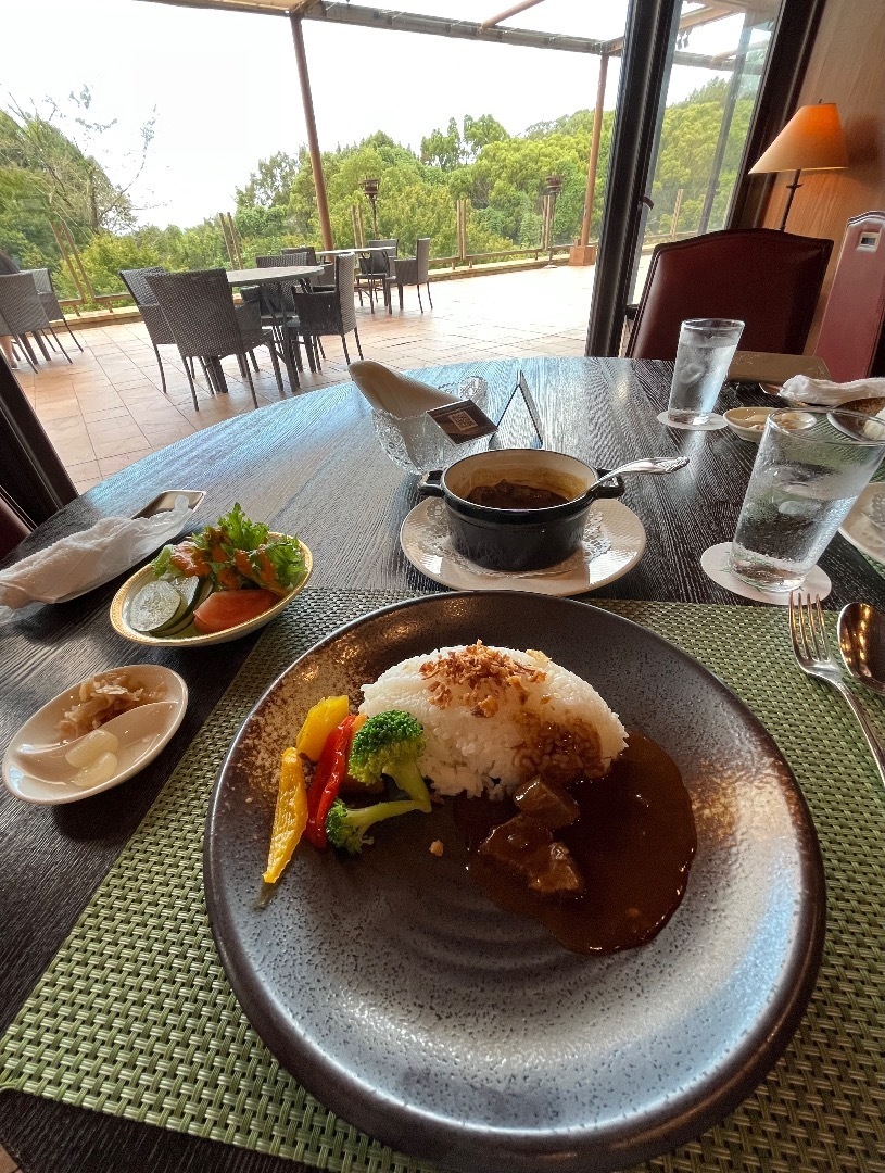 カレー🍛好き 2025年10月12日 前からいわゆる、ホテルのレストランカレーが食べたかったので今日の昼、山の上のホテルで。ビーフカレーランチをいただきました。帰り道、昨日ポスターを届けに来られた守時タツミさんのご実家=岡山での活動拠点、を発見!よく見ると、何人かの方で集まって庭でBBQ?されていました。